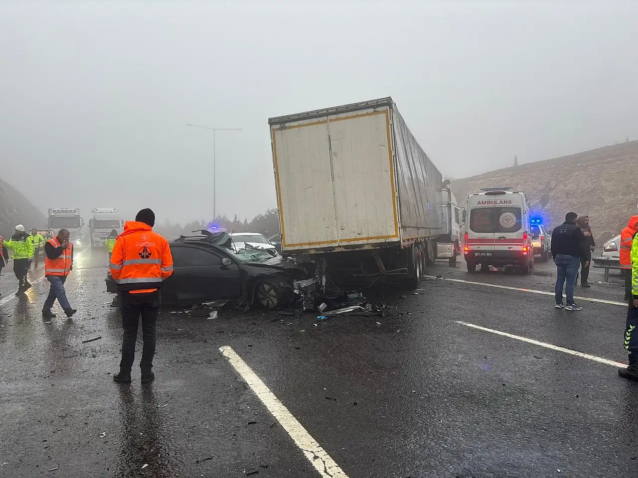 Gaziantep'te TAG Otoyolu'nda etkili olan yoğun sis ve yağış zincirleme kazaya yol açtı. Otobüs, TIR ve 6 otomobilin karıştığı kazada 2 kişi yaşamını yitirdi, çok sayıda kişi yaralandı. Otoyol trafiğe kapatıldı.