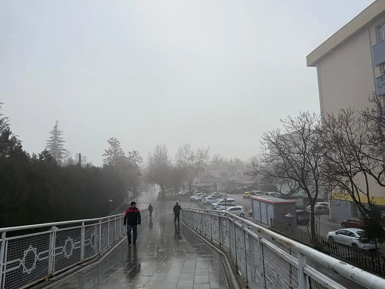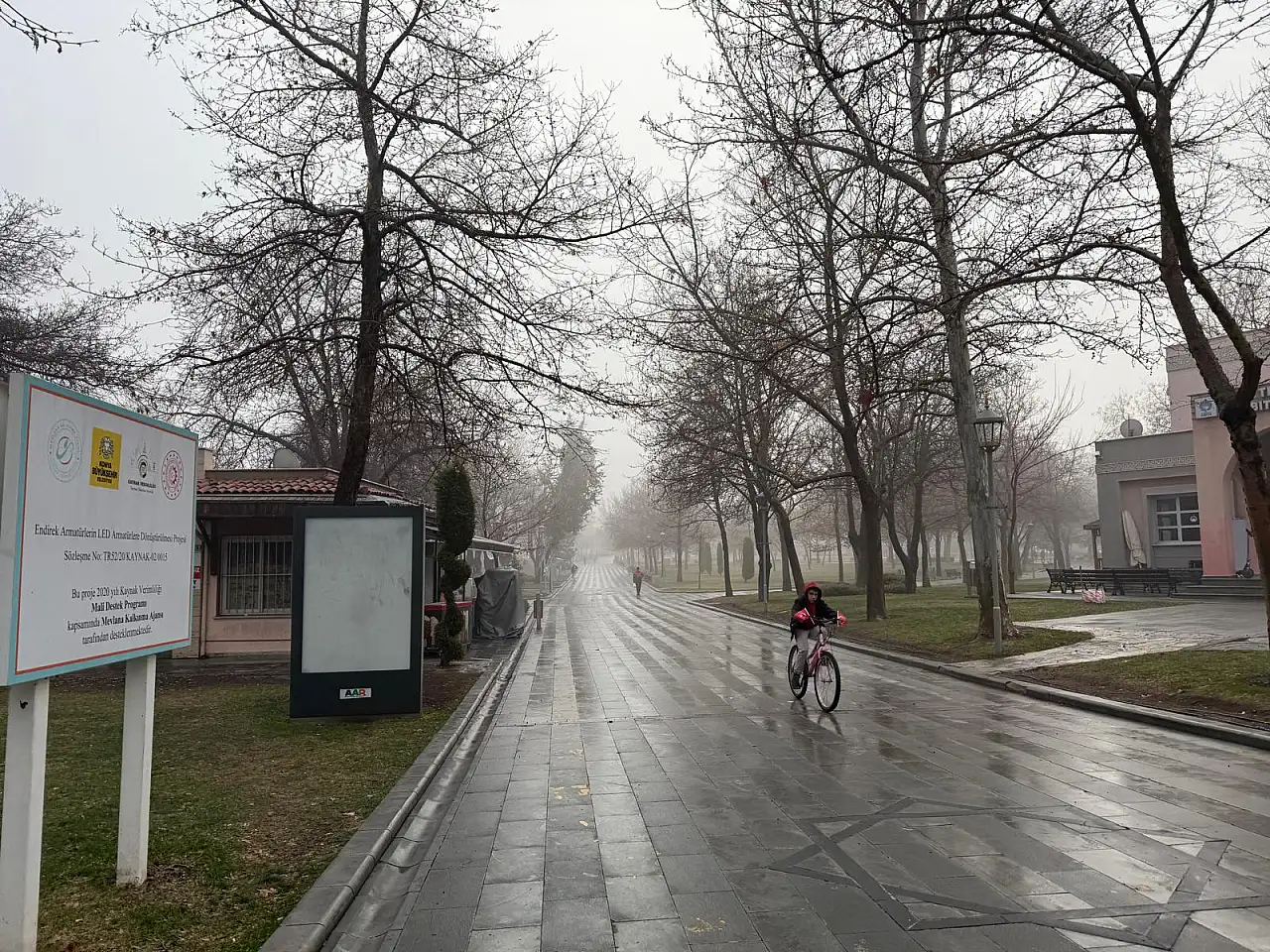 Konya, haftanın son iş gününe yoğun sisle uyandı. Gece başlayan ve sabah saatlerinde etkisini artıran sis, görüş mesafesini düşürdü. Trafik ekipleri olası risklere karşı denetimlerini arttırdı.