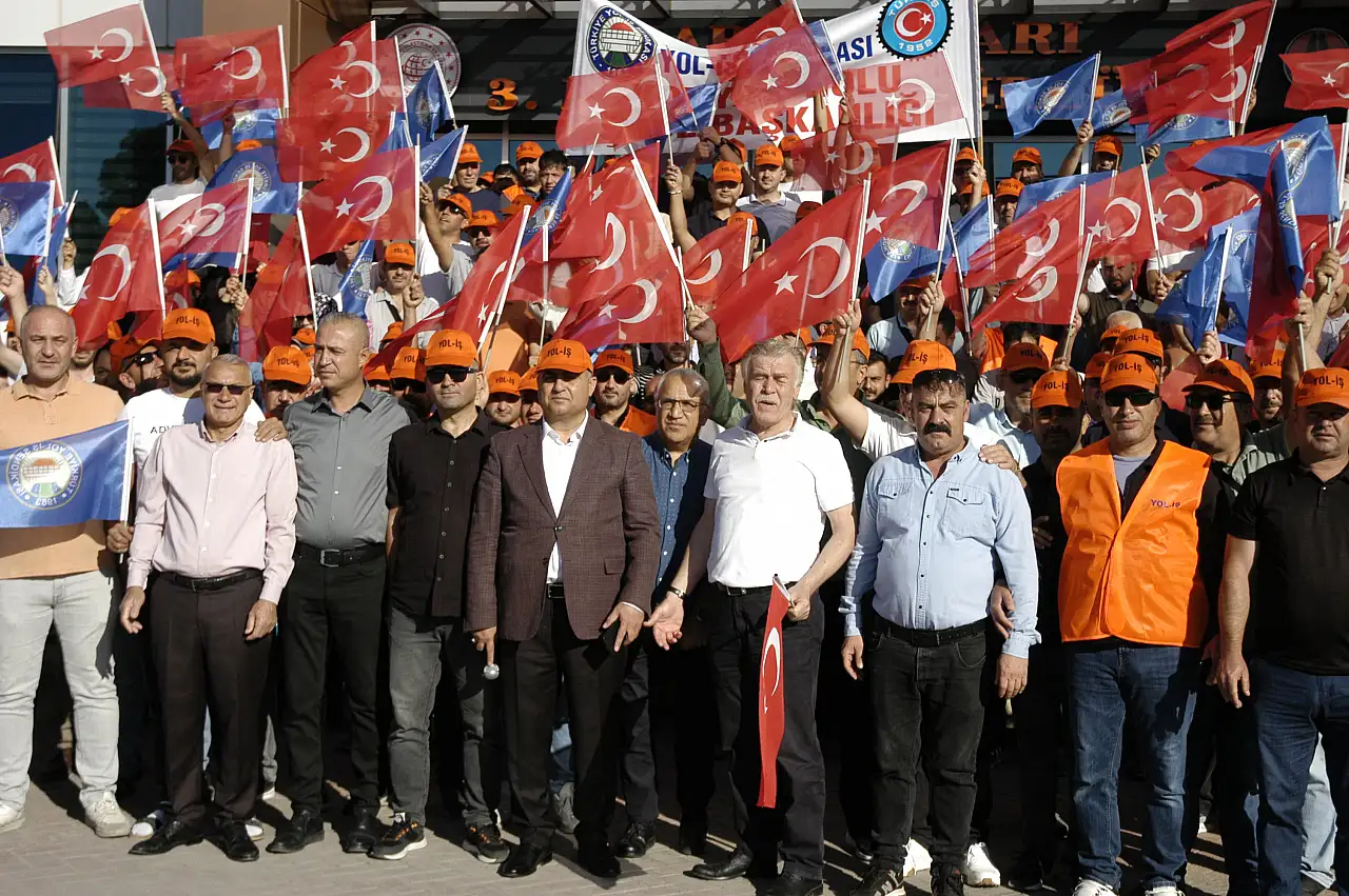 Başkan Dadak, “ Bugün burada kamuda çalışan işçiler olarak Toplu iş sözleşmesi sürecinde, hükümet tarafından sunulan teklifinin kabul edilemez olduğunu vurgulamak ve tepkimizi göstermek ve dile getirmek adına biraraya geldik ve bu basın toplantımızı gerçekleştiriyoruz.