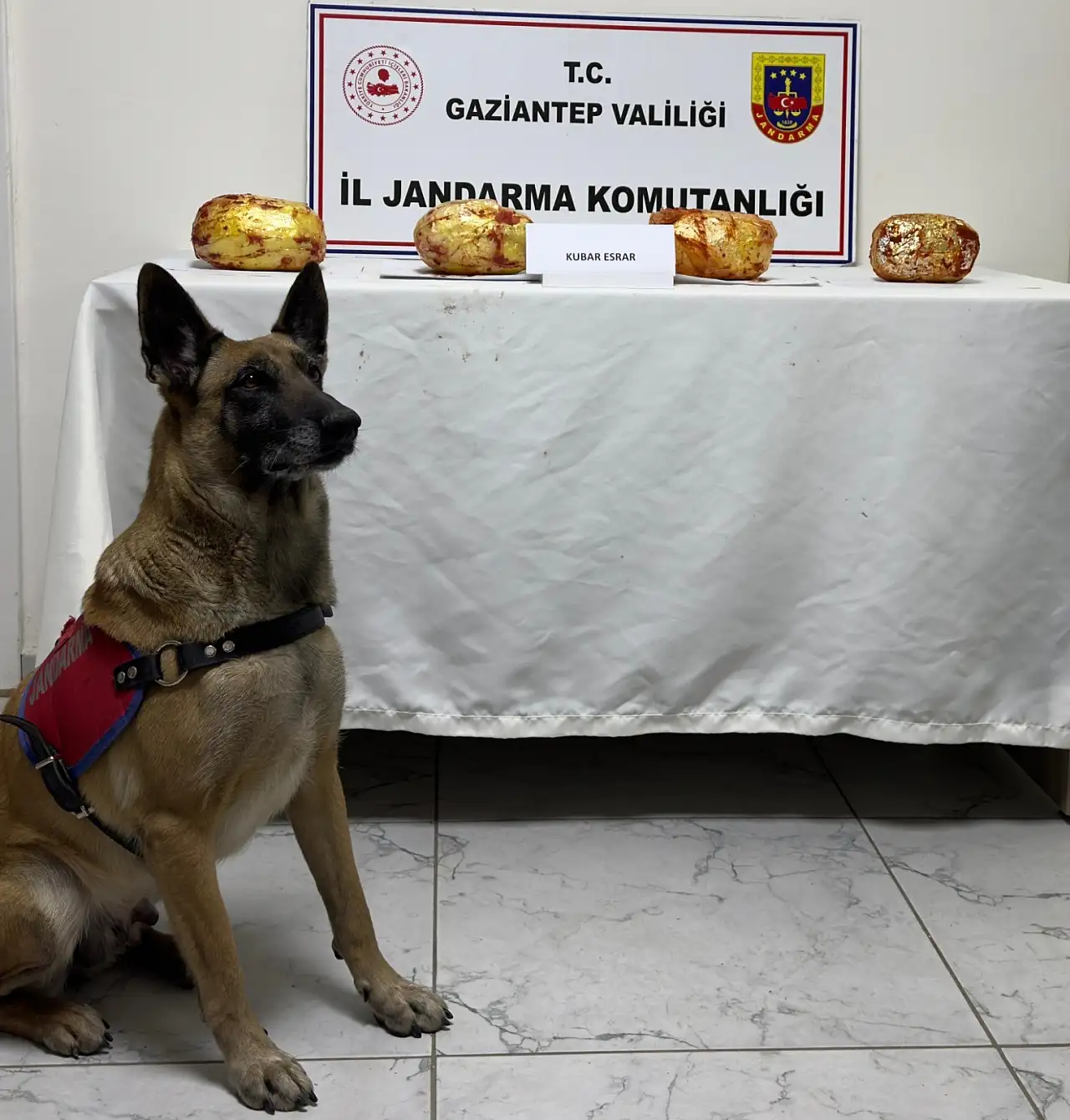 Gaziantep'in Nurdağı ilçesinde bir yolcu otobüsünde dedektör köpeğin tepki vermesi üzerine arama yapıldı. Yapılan aramada 2 kilogram 250 gram esrar ele geçirildi.